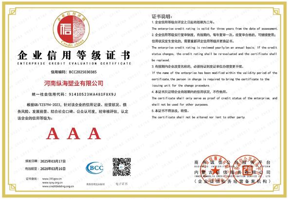 China Henan Zonghai Plastic Industry Co., Ltd. Zertifizierungen